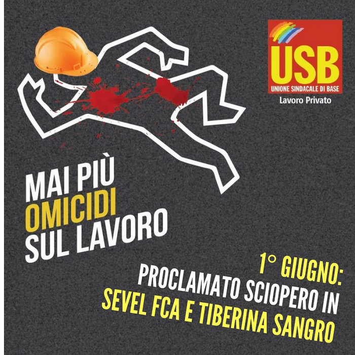 L’Unione Sindacale di Base ha proclamato 4 ore di sciopero nazionale del settore industriale contro le morti sul lavoro per il 31 maggio. In Fca, USB ha deciso di estendere a otto ore lo sciopero negli stabilimenti italiani in cui siamo presenti per accendere le luci su un tema che riteniamo altrettanto importante: le ricadute negative a livello occupazionale che porterà il nuovo piano industriale FCA, che sarà presentato a Balocco il 1° giugno. Siamo convinti che i due temi si intreccino fra loro, che lo sfruttamento dell’uomo porti inevitabilmente a drammatiche conseguenze, sia che coinvolga il lavoratore mentre svolge la mansione in ambienti sempre più insicuri, sia che perda il lavoro e finisca nel disperato