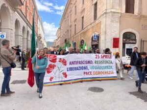 A L’Aquila si celebra il 25 aprile con la cerimonia istituzionale alla Villa Comunale e il corteo dell’Anpi che ha attraversato la città ricongiungendosi alle celebrazioni in Villa.