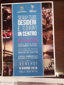 L’8 giugno torna la Notte dello Shopping, voluta dall’amministrazione comunale di Pescara per favorire gli acquisti nel Centro Commerciale Naturale. E Domenica arrivano gli Ironman. Week end complicato per la circolazione.