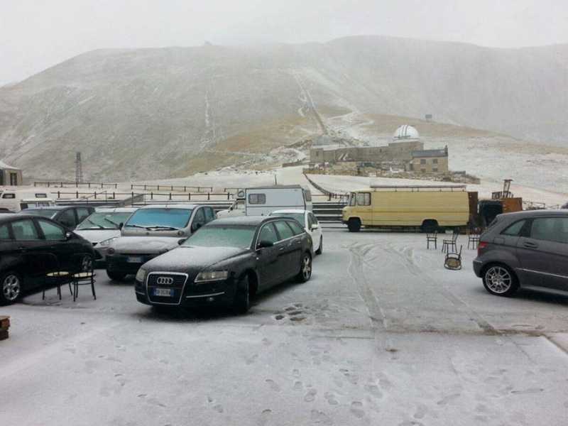Abruzzo, 10 cm. di neve a Campo Imperatore. Nevica sulle vette abruzzesi. La neve è tornata ad imbiancare Campo Imperatore a quota 1600 metri, e sul Gran Sasso oltre i 2000 metri mentre sul resto della regione si registrano abbondanti piogge.