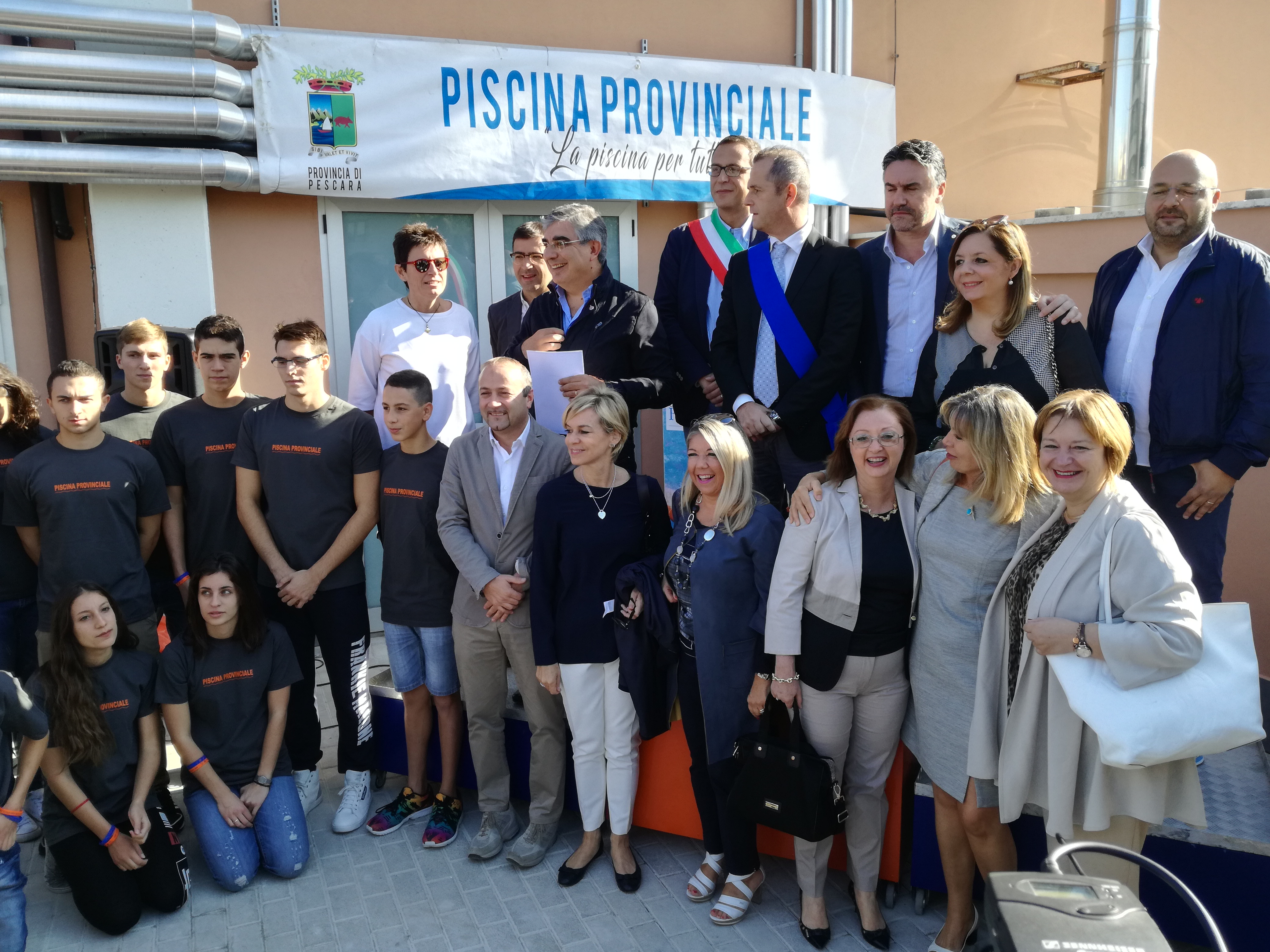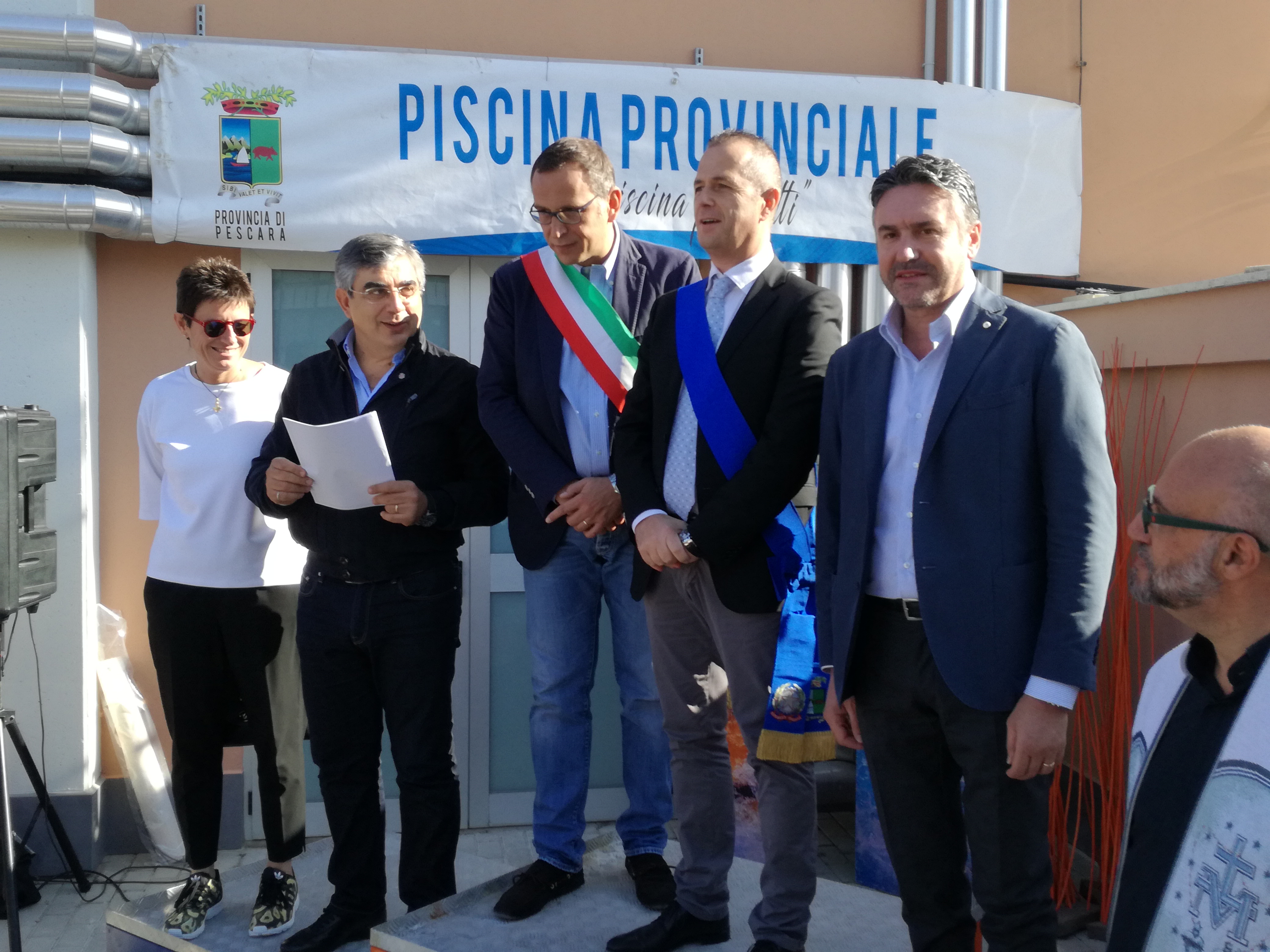 “La piscina per tutti” è lo slogan che contraddistingue la nuova gestione delle attività acquatiche, ginniche, educative e sociali che la RTI ADS Club Aquatico Pescara, ADS Club Nuoto l’Aquila e UISP Comitato Regionale Abruzzo e Molise, gestirà nei prossimi anni. Insieme al Presidente della Provincia Antonio Di Marco sono intervenuti il Presidente della Regione Luciano D’Alfonso, il Sindaco di Pescara Marco Alessandrini e altre autorità regionali, provinciali e comunali.