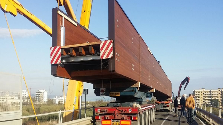 San Salvo, il nuovo ponte della pista ciclabile è stato installato. Sono terminati la scorsa notte senza intoppi i lavori per il posizionamento del ponte in legno lamellare della pista ciclabile realizzata sopra il tracciato ferroviario che collega la città alla marina.
