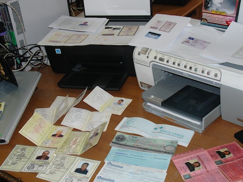 Grazie a stampanti professionali, erano in grado di produrre una vasta quantità di documenti falsi. Per questo i carabinieri del nucleo Lavoro al termine di una perquisizione condotta a Bagnara di Romagna, nel Ravennate, in collaborazione con i militari della locale caserma e la Dtl (direzione territoriale lavoro di Ravenna), hanno arrestato in flagranza due persone per il reato di falsificazione di documenti. Si tratta di un 58enne originario di Marcianise (Caserta) e di un 42 enne originario di Giulianova, entrambi già noti alle forze dell’ordine e da tempo monitorati dall’Arma. Le indagini erano scattate in seguito a una segnalazione specifica giunta alla Dtl. Gli inquirenti ipotizzano che dietro ai due vi possa essere un vasto giro di extracomunitari in cerca di documenti fasulli.