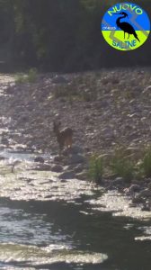 Un’immagine scattata dai volontari dell’associazione Nuovo Saline onlus del capriolo che si disseta sulle sponde del fiume Saline.