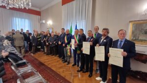 IN ABRUZZO – Il Prefetto di Pescara, Flavio Ferdani, alla presenza delle principali Autorità civili e Militari, dei Sindaci dei Comuni di Pescara, Montesilvano e Penne, ha consegnato ai familiari degli insigniti le “Medaglie d’Onore” attribuite ai sensi della Legge 27 dicembre 2006, n.296 cittadini italiani, militari e civili, deportati ed internati nei lager nazisti e destinati al lavoro coatto per l’economia di guerra e ai familiari dei deceduti. I riconoscimenti alla “Memoria” sono stati concessi dal Presidente della Repubblica in favore di: DE ANTONIS Quinto; DI SILVERIO Carmine ; FRATTAROLA Francesco; SQUARTECCHIA Alfonso; TIBERII Ottorino. Consegnati, inoltre, i diplomi delle Onorificenze dell’Ordine “Al merito della Repubblica Italiana” conferite dal Presidente della Repubblica ad alcuni cittadini benemeriti della nostra Provincia che si sono distinti per elevati meriti civili, sociali e culturali o per aver svolto lunghi e onorati servizi nelle carriere civili e militari.