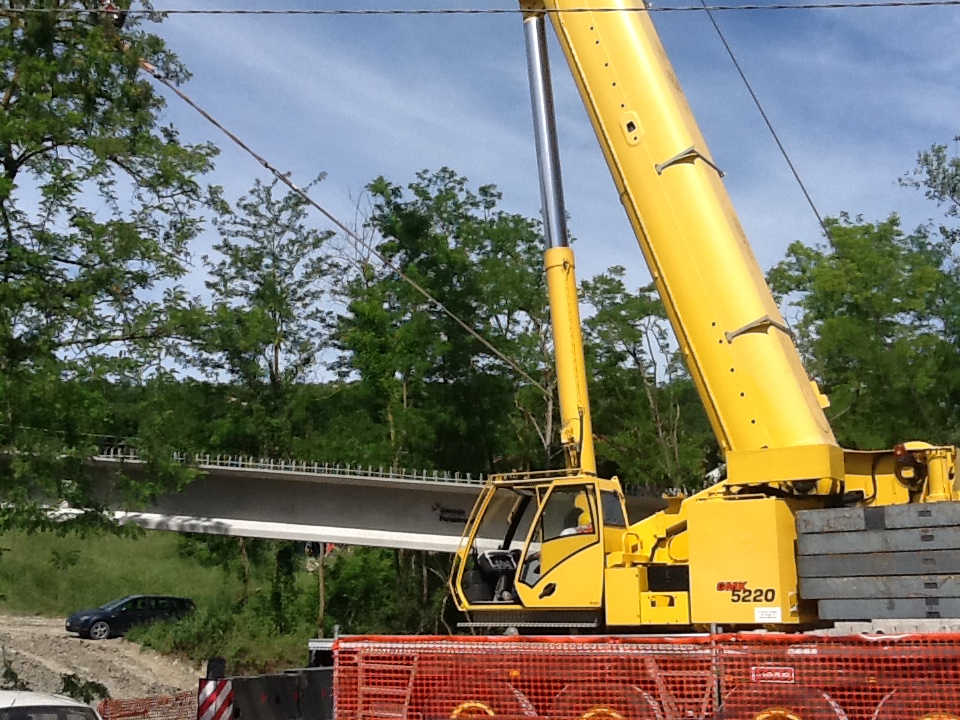 Nell’ambito di una cerimonia ufficiale alla presenza tra gli altri del Presidente della Provincia di Pescara, Antonio Di Marco, del Presidente della Regione, Luciano D’Alfonso e dal Sindaco di Manoppello, Gennaro Matarazzo, sono state posate le travi sul nuovo viadotto che attraversa il Fosso Manoppello. 5 Travi in cemento armato della lunghezza di 22 metri per il primo attraversamento di Fosso Manoppello. In una successiva fase, ha illustrato l’Ing. Paolo D’Incecco, Dirigente del settore Lavori Pubblici della Provincia di Pescara saranno posizionate altre travi di luce più lunga per il secondo attraversamento. La S.R. 539 di Manoppello riveste un ruolo importante per il collegamento della media Val Pescara con le aree interne dell’Alento e del Foro, nonché rappresenta l’asse di collegamento essenziale tra i Comuni di Manoppello, Serramonacesca, Roccamontepiano e Pretoro.