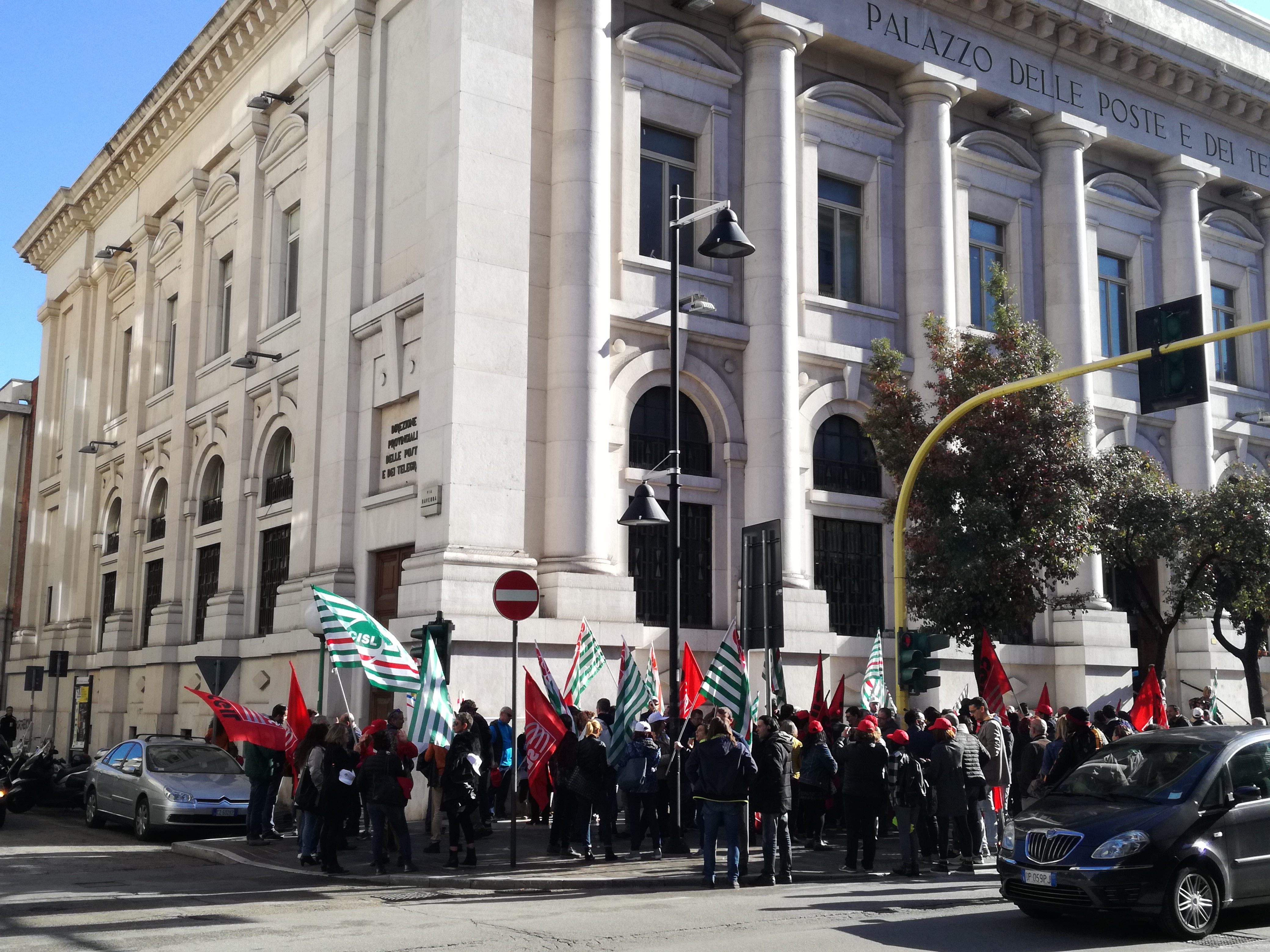 Pescara, Sciopero generale contro la privatizzazione delle Poste Italiane. Con bandiere, fischietti ed altoparlanti i lavoratori delle Poste Italiane hanno partecipato stamani, davanti la sede regionale in Corso Vittorio Emanuele angolo Via Ravenna a Pescara, allo sciopero generale indetto per l’intera giornata dalle segreterie nazionali di SlpCisl, SlcCgil, FailpCisal, ConfsalCom e UglCom.