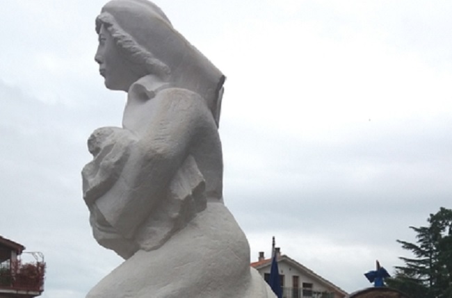 E’ in pietra della Majella e raffigura una donna con un bambino fra le braccia, con la gonna impigliata nel filo di ferro, che riesce a liberarsi e continuare il viaggio. Accanto una ruota, simbolo del viaggio, del cammino di un popolo. E’ il monumento al ‘Samudaripen’ inaugurato a Lanciano nel Parco delle Memorie, opera realizzata dallo scultore abruzzese Tonino Santeusanio grazie a una raccolta fondi promossa, tramite un comitato internazionale, da Santino Spinelli, artista e docente universitario, ambasciatore della cultura Rom nel mondo anche con la musica del suo Alexian Group. Un monumento affinché errori e orrori umani non possano ripetersi mai più, per ricordare la persecuzione razziale di cui furono vittime Rom e Sinti. ‘Porrajmos’ e ‘Samudaripen’ (che significa letteralmente ‘tutti morti’) sono le parole utilizzate per definire il tentativo di sterminio subito dagli appartenenti alla minoranza in Italia e in Germania tra il 1935 e il 1945.