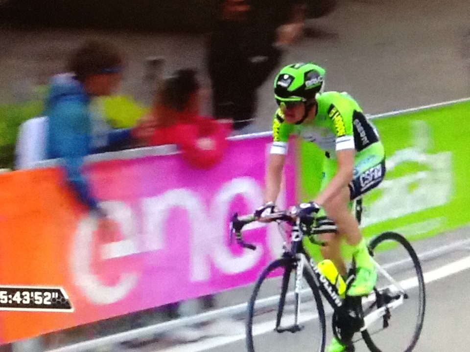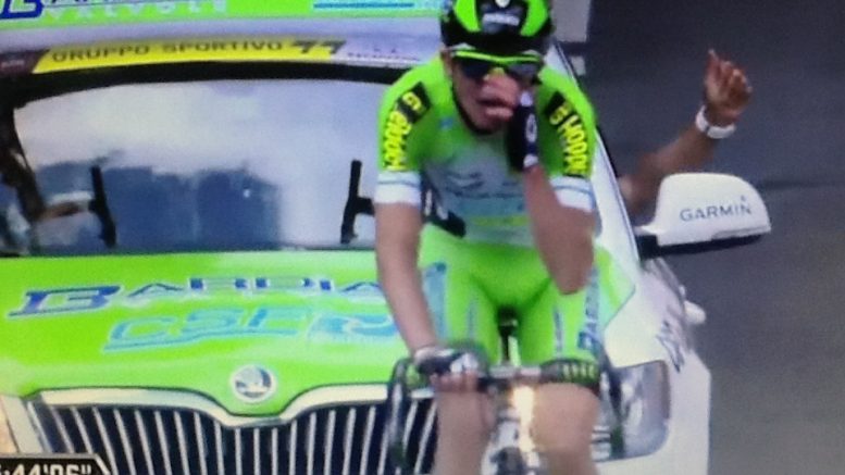 Nell’ultimo tratto il corridore della Bardiani ha fatto il vuoto pennellando, in discesa, le traiettorie degli impegnativi tornanti, fino al trionfo del traguardo.