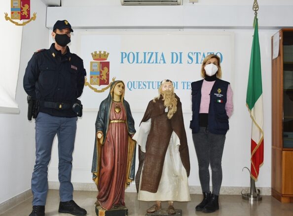 La Questura di Teramo ha donato alla Curia Vescovile di Teramo/Atri due statue lignee raffiguranti la Madonna e Sant’Antonio Abate che saranno, poi, affidate a due chiese del territorio. Le preziose antiche statue sono frutto di un sequestro che nel 2019 portò a due arresti.
