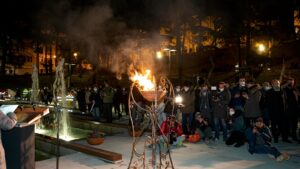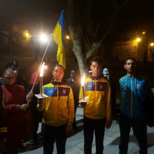BRACIERE ACCESO DAGLI ATLETI UCRAINI – Valeria Kononenko, atleta 31enne affiancata dal 20enne Denys Khotulov, scelti tra i ciclisti della nazionale ucraina ospiti del capoluogo abruzzese da quasi un mese, hanno acceso il braciere nel Parco della Memoria, allestito in piazzale Paoli alle porte del centro in ricordo delle 309 vittime del sisma del 6 aprile 2009.Un gesto di solidarietà in omaggio a una comunità colpita dalla guerra. La delegazione degli atleti ucraini, rimasta bloccata in Turchia dopo l’inizio del conflitto, è ospite del progetto Case di Roio, uno dei quartieri antisismici costruiti proprio per ospitare le famiglie sfollate del sisma. Accanto agli atleti, una bandiera ucraina La fiaccolata, a cui hanno partecipato 2-3mila persone, ha raggiunto piazzale Paoli per dare il via alla cerimonia in ricordo del sisma, partendo proprio dall’accensione del braciere e, a seguire, la lettura di tutti i nomi delle vittime. Alle 24, nella chiesa di Santa Maria del Suffragio, in Piazza Duomo – lì dove è stato acceso un alto fascio di luce, la Messa officiata dall’arcivescovo metropolita della città dell’Aquila, cardinale Giuseppe Petrocchi, cui è seguita laa veglia di preghiera a cura dell’arcidiocesi. Alle 3:32 sono risuonati i 309 rintocchi, uno per ognuna delle vittime.