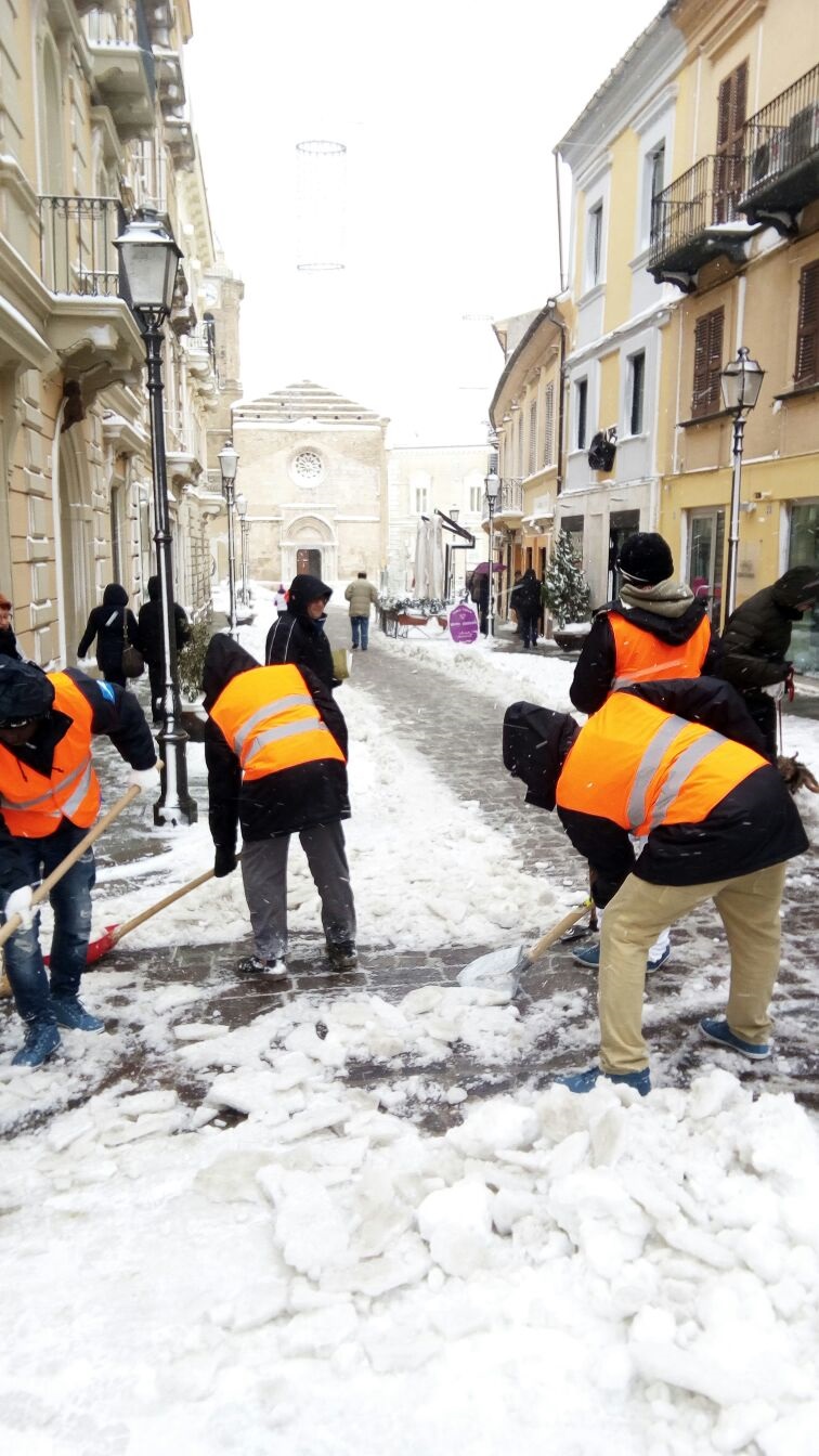 Maltempo, immigrati rimuovono la neve a Vasto. Un segnale significativo che avvicina centinaia di extracomunitari ai cittadini residenti nei comuni che li ospitano. Immigrati ospiti dei centri di accoglienza del Consorzio Matrix che in questi giorni sono stati impegnati nella rimozione della neve a Vasto e nei centri limitrofi.