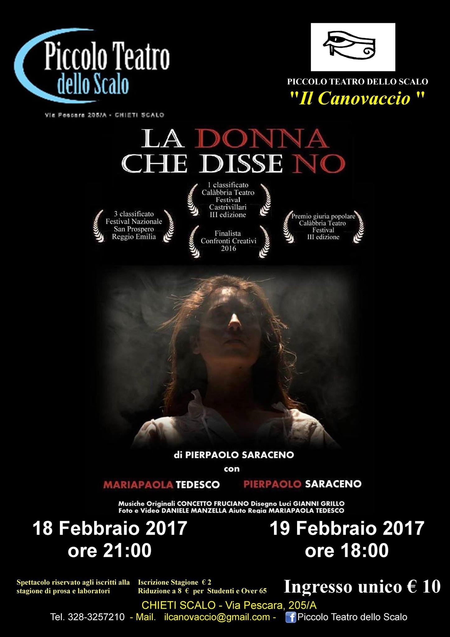 Chieti Scalo, “La donna che disse no”. Al Piccolo Teatro di Chieti Scalo, l’ Associazione Il Canovaccio porta in scena sabato 18 febbraio e domenica 19 febbraio lo spettacolo teatrale di Maria Paola Tedesco e Paolo Saraceno dal titolo “Franca Viola. La Donna che disse no”.