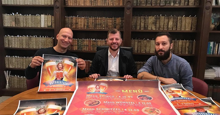Pescara, al via l’ Oktober Fest 2017. Si svolgerà da giovedì 5 a lunedì 9 ottobre in piazza della Repubblica l’Oktober Fest 2017, la presentazione oggi in Sala Aternum con l’assessore a Turismo e Grandi Eventi Giacomo Cuzzi, il portavoce del Consorzio Pescara Vecchia Cristian Summa e gli operatori che aderiscono all’evento.