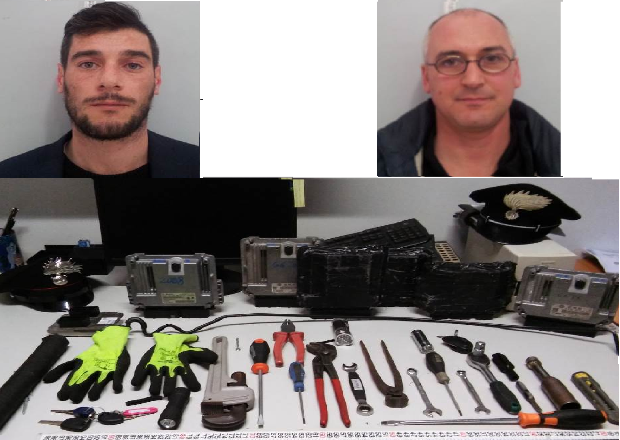 I Carabinieri del NORM in collaborazione con i Carabinieri della Compagnia di Montesilvano, in servizio di perlustrazione nella zona sud della città, in concomitanza con lo svolgimento dell’incontro di calcio di serie A, hanno ricevuto la segnalazione di un’auto Volkswagen Golf, rubata poco prima in viale Pindaro, a due passi dallo stadio Adriatico. Le immediate ricerche hanno consentito di individuare poco dopo il veicolo in via Tirino, dove i militari hanno visto due persone che dopo aver parcheggiato la Golf, stavano salendo su un’altra macchina. Bloccati e perquisiti, si è avuta la certezza della loro responsabilità visto che all’interno della loro Panda è stato trovato un borsone contenente un vero arsenale di attrezzi da scasso e sette centraline per l’avviamento di autovetture, di cui una proprio della Volkswagen Golf. I due, tratti in arresto nella flagranza del reato, sono stati processati per direttissima; nei loro confronti sono stati disposti gli arresti domiciliari.
