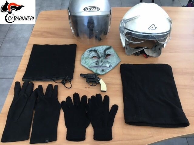 I militari dell’arma intuendo le intenzioni criminose dei due, hanno deciso d’intervenire, proprio mentre i due stavano per fare irruzione dentro un istituto di credito. Alla vista dei Carabinieri i due hanno cercato di darsi alla fuga ma sono stati prontamente raggiunti dai militari. Dopo una breve colluttazione i due sono stati arrestati. Nella breve fuga i due malviventi hanno cercato di disfarsi di alcuni oggetti, tutti recuperati. Due sciarpe, una maschera di carnevale in lattice di gomma, i guanti ed una pistola a salve priva di tappo rosso. Dopo le formalità di rito, previa informazione alla Procura della Repubblica presso il Tribunale di Chieti, gli arrestati sono stati condotti presso il carcere di Chieti, con l’accusa di tentata rapina, ricettazione e resistenza a Pubblico Ufficiale.