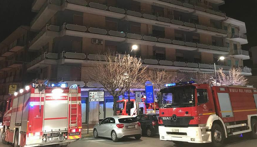 Ventisette famiglie hanno dovuto abbandonare questa notte, intorno alle tre, un condominio di nove piani nel centro storico di Ortona nella zona di Porta Caldari. A causa di un incendio che si è sviluppato nella cabina dell’ascensore, forse per un corto circuito, le famiglie hanno dovuto momentaneamente abbandonare Palazzo Cirulli. Cinque persone sono state trasportate negli ospedali di Chieti e di Lanciano per problemi respiratori, una ventina quelle assistite e visitate sul posto. In piazza Porta Caldari intervenuti Carabinieri e Vigili del Fuoco e il 118 di Chieti che ha coordinato l’attività sanitaria, insieme a Croce rossa e associazione di Protezione civile Cnav. Oltre all’ambulanza 118 di stanza a Ortona sono arrivate un’ambulanza da Lanciano e una da Chieti da dove è partita anche un’auto medica. Il 118 ha gestito gli intossicati, tre trasportati all’ospedale di Lanciano, due a quello di Chieti.