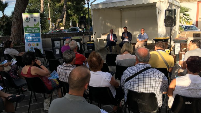 Le nuove zone coinvolte, le modalità di conferimento dei rifiuti, le caratteristiche del servizio e i benefici che può dare tale servizio sono state illustrate nei dettagli. Nella piazzetta centrale del Borgo è stato allestito un gazebo con tutto il materiale informativo. Dopo l’introduzione del sistema della raccolta porta a porta per 300 utenze del borgo, a giorni il progetto verrà esteso. Anche alla luce dei felici risultati ottenuti con la raccolta porta a porta nella zona centrale di Montesilvano Colle con percentuali davvero entusiasmanti, dal 22% si è arrivati alla ragguardevole percentuale dell’87,5%. La sperimentazione, è stato detto, ora si amplia alla restante area del borgo a partire dal prossimo 3 luglio per raggiungere la piena operatività l’8 dello stesso mese, coinvolgendo più di 2100 utenti in totale.