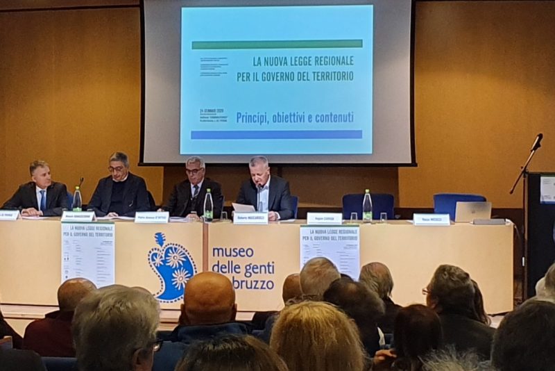 Una nuova legge regionale per il governo del territorio: se ne è discusso stamani a Pescara presso l’Auditorium Leonardo Petruzzi. L’appuntamento è stato promosso dalla sezione Abruzzo e Molise dell’Istituto Nazionale di Urbanistica, dalla Federazione Architetti, Pianificatori, Paesaggisti e Conservatori di Abruzzo e Molise e dalla Federazione Regionale degli Ordini di Ingegneri d’Abruzzo.