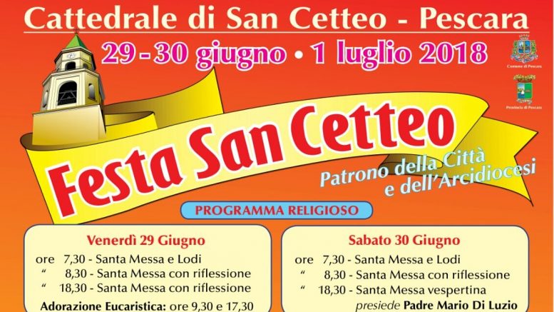 Torna anche quest’anno a Pescara la festa in onore di San Cetteo Patrono della Città e dell’Arcidiocesi. Tre giorni di festa, dal 29 giugno al I° luglio, con un ricco programma d’iniziative.