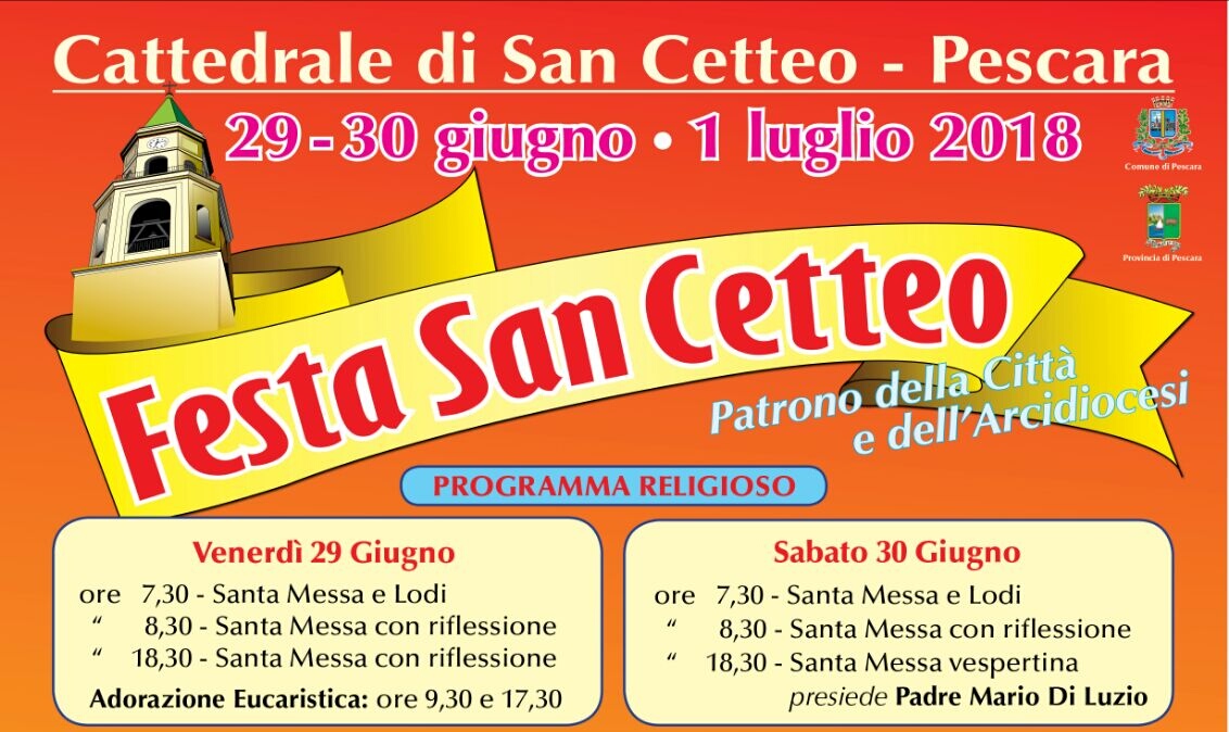 Torna anche quest’anno a Pescara la festa in onore di San Cetteo Patrono della Città e dell’Arcidiocesi. Tre giorni di festa, dal 29 giugno al I° luglio, con un ricco programma d’iniziative.