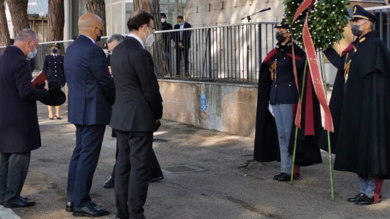 All’interno del cortile della “nostra casa,” il nostro polifunzionale, al suono del “silenzio”, è stata deposta una corona d’alloro, in memoria dei caduti della Polizia di Stato, per omaggiare la dedizione di tutti coloro che hanno sacrificato la loro vita per l’adempimento del dovere. A costoro rivolgo un sentito pensiero, certo che la loro memoria è la linfa giusta per accrescere il nostro impegno.