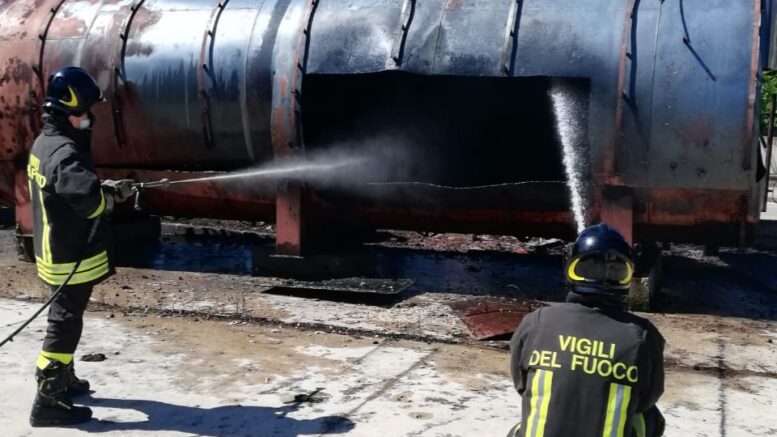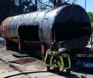 Sul luogo dell’intervento è stata inviata anche una squadra del Comando dei vigili del fuoco di Ascoli Piceno. L’incendio ha interessato il gasolio residuo rimasto all’interno di una grande cisterna di gasolio da rottamare, mentre degli operai la stavano sezionando con delle attrezzature da taglio.