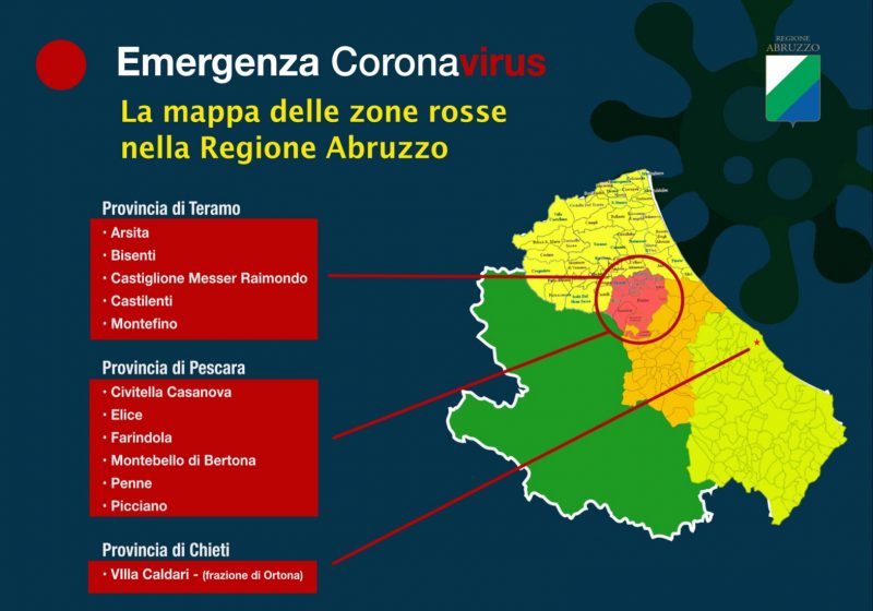 Emergenza Coronavirus Abruzzo, la mappa delle zone rosse nella Regione.