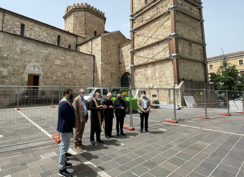 “Sono molto contento perché abbiamo davanti a noi il Giubileo di San Berardo che avrà inizio il 19 dicembre 2022 – ha detto il vescovo – un grande evento per tutta la diocesi e questa notizia arrivata dall’Usr, di poter benedire oggi il cantiere, credo sia veramente un grande dono e un grande segno di speranza, non solo per la Chiesa, ma per tutta la comunità che vuole davvero ripartire”. Il progetto prevede la realizzazione di lavori di consolidamento sismico della torre campanaria e di interventi sulle facciate. “Quello odierno, con la cantierizzazione dell’intervento sulla cattedrale a cui seguiranno i lavori veri e propri fra alcune settimane, rappresenta un segnale importante nel processo della ricostruzione – ha sottolineato Legnini – Questo evento rappresenta un nuovo tassello verso l’avvio di un programma molto vasto per la città di cui fanno parte l’ordinanza speciale che abbiamo adottato sulle scuole danneggiate e sul municipio, l’ordinanza speciale in deroga per gli edifici Ater che attendono di essere ricostruiti da tanto tempo e la ricostruzione privata che sta procedendo a ritmi finalmente sostenuti. Le norme di semplificazione e accelerazione emanate nei mesi scorsi cominciano a dare i loro frutti”.