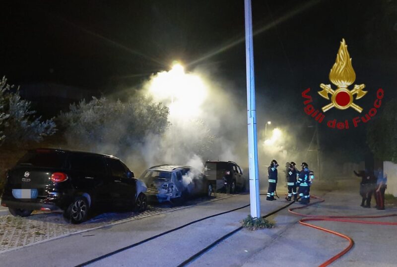 Erano da poco passate le ore 02,30 quando una squadra dei Vigili del Fuoco di Pescara ed una del Distaccamento volontari di Montesilvano sono intervenuti per l’ incendio di nove autovetture in Via Chiappinello a Montesilvano Colle. Le automobili, alcune delle quali di lusso, erano parcheggiate in via Chiappinello, e, da quanto si è appreso, erano state sottoposte a sequestro a seguito di un procedimento penale. Dai primi accertamenti è stata riscontrata l’origine dolosa delle fiamme. Sul posto sono intervenuti oltre ai Vigili del Fuoco anche i Carabinieri di Montesilvano che hanno trovato un contenitore con della benzina.
