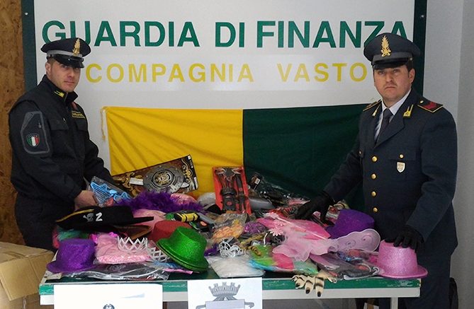 E’ stata battezzata “Carnival protected” l’operazione dei finanzieri della Compagnia di Vasto che hanno sequestrato circa 32.000 articoli di Carnevale contraffatti in quanto privi dei requisiti di sicurezza.