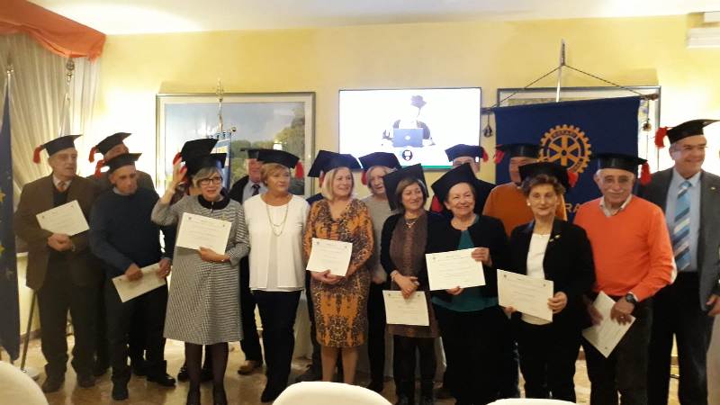 Consegnati gli attestati di merito ai primi 18 partecipanti del corso Gratuito di Alfabetizzazione Digitale per over 65, organizzato dal Club Rotary Chieti ovest, dal titolo “Non è mai troppo tardi 4.0”.