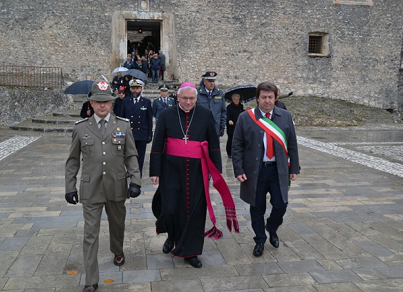 Si è svolta oggi lunedì 23 Ottobre a Capestrano, l’annuale celebrazione in onore del Patrono San Giovanni da Capestrano, Patrono dei Cappellani Militari di tutto il mondo. All’ evento ha partecipato Sua Ecc.za Rev.ma Mons. Werner FREISTETTER, Ordinario Militare per l’Austria, il Vice Console d’Ungheria in Italia dott. Tomas HEINTZ, oltre alle massime autorità militari e civili della Regione Abruzzo, tra cui il Comandante Regionale dell’Esercito, Gen. B. Giuseppe DI GIOVANNI, ricevuti dal Sindaco di Capestrano, Antonio D’ALFONSO. Presso il Monumento ai Caduti della cittadina abruzzese, si è svolta la cerimonia dell’Alzabandiera e la resa degli onori ai caduti, con la deposizione di una corona d’alloro da parte delle autorità italiane e delle rappresentanze austriache ed ungheresi presenti. Gli onori militari sono stati resi da un picchetto armato del 9° rgt. alp.. A seguire, il corteo ha proseguito presso il convento di Capestrano, ove Mons. FREISTETTER ha officiato la Santa Messa. Quale prologo all’ evento, Domenica 22 Ottobre, presso il convento di Capestrano si è tenuto il convegno “Belgrado 1456: l’Europa tra guerra e pace. L’azione di San Giovanni”, presieduto dal Prof. Marco BARTOLI Professore associato all’ Università di Roma LUMSA e Presidente del Comitato Scientifico del Centro Studi San Giovanni da Capestrano.