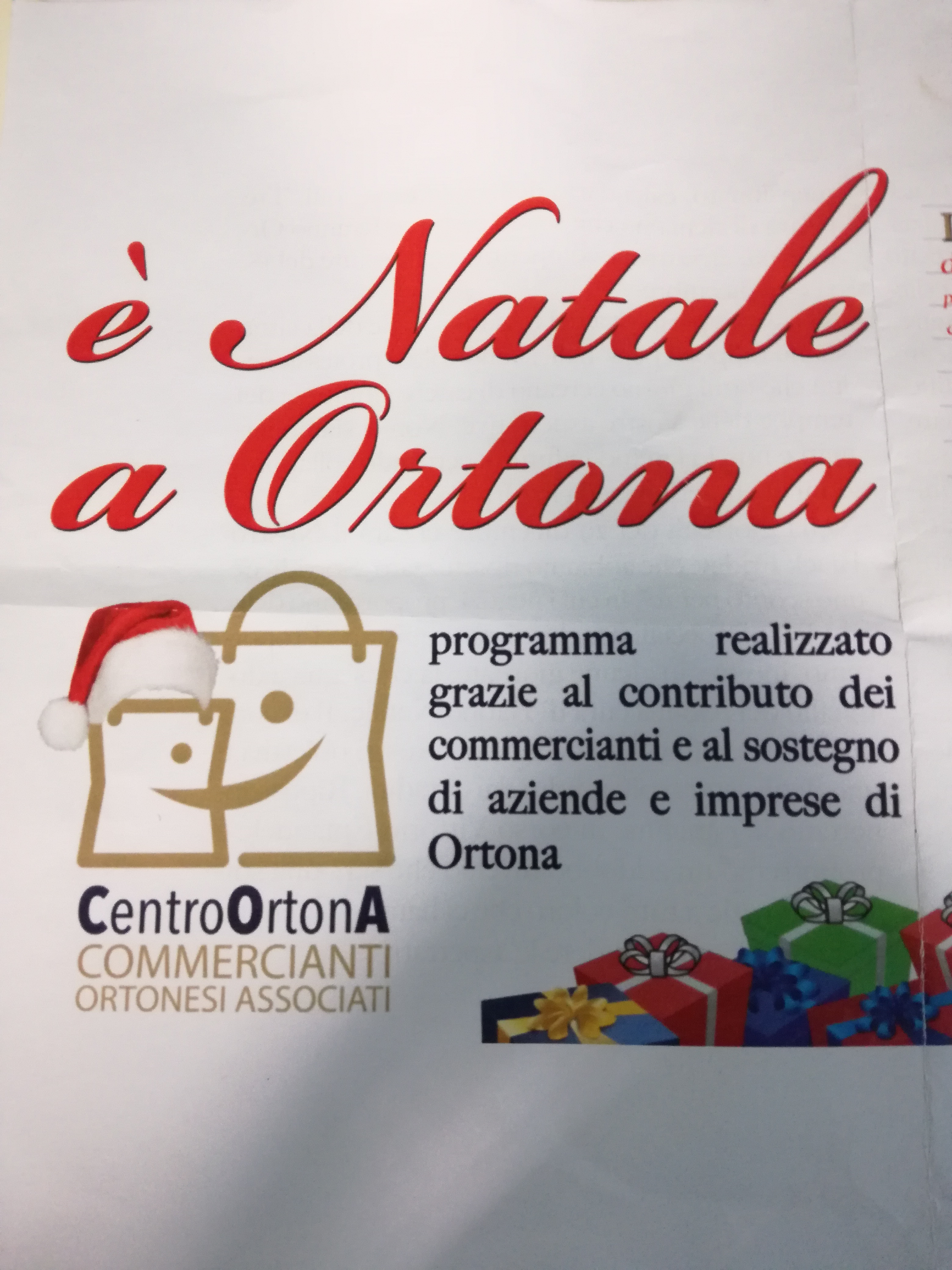 Il programma natalizio, realizzato grazie al contributo di 140 commercianti ed imprenditori del posto prevede il 18 dicembre l’esibizione degli allievi dell’Accademia dello Spettacolo con ospite d’onore Giò Di Tonno, il 23 dicembre i Cori di Ortona e l’esibizione della Banda di Babbo Natale ed infine il 29 dicembre alle ore 18,00 risate sotto l’albero con il cabarettista abruzzese Vincenzo Olivieri.