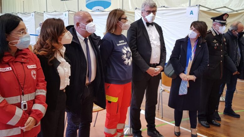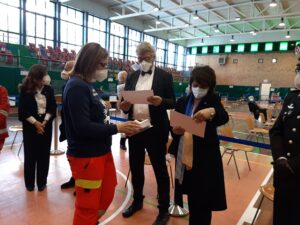 Alla breve e informale cerimonia è intervenuto anche il Generale Carlo Cerrina, Comandante della Legione Carabinieri Abruzzo e Molise, il quale ha sottolineato la vicinanza dell’Arma al Comitato #maniunite attraverso una partnership instaurata da tempo. Presenti Rocco Del Conte, in rappresentanza dell’Ordine dei medici e odontoiatri della provincia di Chieti, il Governatore del Distretto Rotary 2090 Rossella Piccirilli, che ha avviato il reclutamento di soci volontari da mettere a disposizione della campagna vaccinale, Angela Paolucci, Presidente della Croce Rossa già oggi schierata al Pala UdA, e Costantino Gallo, medico, responsabile del settore Ricerca e innovazione della Asl Lanciano Vasto Chieti.