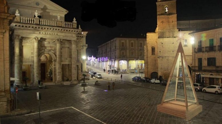Il progetto dell’albero di Natale è stato realizzato dall’architetto Carmine Mergiotti e asseverato dal punto di vista della sicurezza dall’ingegnere Fabio Cecco D’Ortona; il legno lamellare di abete rosso d’Austria con cui verrà realizzata la struttura è proveniente e certificato da aziende che rispettano il rigido protocollo PEFC di gestione forestale sostenibile, che prevede per ogni taglio di un albero la piantumazione di tre nuovi alberi. La struttura verrà realizzata e montata dall’azienda Trovatek di Roberto Trovarelli: avrà forma piramidale, di altezza 10 metri e di base quadrata 4 metri per lato; alla sommità ci sarà una stella di 1,40mt e la struttura sarà tutta illuminata da 6000 punti luce calda a led. L’albero di Natale sarà installato in piazza Plebiscito giovedì 6 dicembre e sarà acceso venerdì 7 dicembre alle ore 18.30, a margine della deposizione della corona di fiori alla statua della Madonna del Ponte che si trova sulla sommità della Cattedrale ad opera dei Vigili del Fuoco.