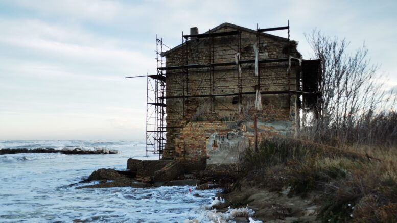 “Con il trascorrere degli anni, nel tratto di Cologna e della Riserva Borsacchio, c’è stato un pesante fenomeno erosivo che ha portato quella che cinquanta anni fa era una casa con terreni fronte mare a essere raggiunta e distrutta dal mare. Infatti la casa verde, che sta crollando, ormai non è nemmeno sulla spiaggia, è letteralmente in mare. Il Presidente Borgatti aggiunge ancora che negli ultimi anni , ed in particolare nel 2021, non è possibile nemmeno passare davanti ad essa per via delle onde che arrivano alle mura crollate ed i passanti devono passar dietro di essa per continuare la passeggiata. Correndo pesanti pericoli visti i crolli costanti. Il paradosso è che nelle planimetrie, comprese le recenti del prossimo PAN, la linea di costa demaniale , la spiaggia per intenderci, è ancora ferma a decenni fa. Infatti la “Casa Verde” risulta una casa di campagna con terreni fronte mare per decine di metri prima della spiaggia.
