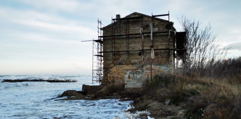“Con il trascorrere degli anni, nel tratto di Cologna e della Riserva Borsacchio, c’è stato un pesante fenomeno erosivo che ha portato quella che cinquanta anni fa era una casa con terreni fronte mare a essere raggiunta e distrutta dal mare. Infatti la casa verde, che sta crollando, ormai non è nemmeno sulla spiaggia, è letteralmente in mare. Il Presidente Borgatti aggiunge ancora che negli ultimi anni , ed in particolare nel 2021, non è possibile nemmeno passare davanti ad essa per via delle onde che arrivano alle mura crollate ed i passanti devono passar dietro di essa per continuare la passeggiata. Correndo pesanti pericoli visti i crolli costanti. Il paradosso è che nelle planimetrie, comprese le recenti del prossimo PAN, la linea di costa demaniale , la spiaggia per intenderci, è ancora ferma a decenni fa. Infatti la “Casa Verde” risulta una casa di campagna con terreni fronte mare per decine di metri prima della spiaggia.