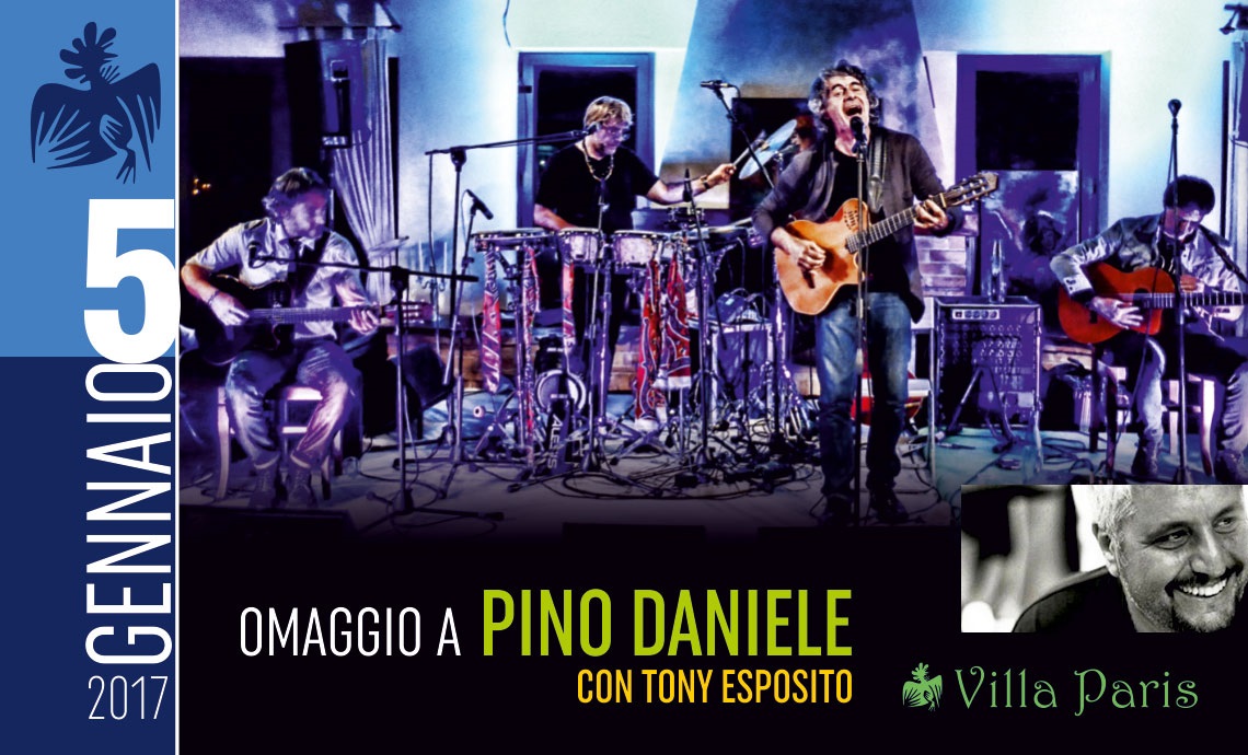 Roseto, Tony Esposito rende omaggio a Pino Daniele. A Villa Paris di Roseto, giovedì prossimo 5 gennaio, per ricordare la musica ed il talento di Pino Daniele, a due anni dalla sua scomparsa, il percussionista partenopeo, Tony Esposito si esibirà con il suo gruppo.