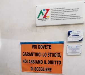 Noi abbiamo il diritto di scegliere” è quanto si legge in un cartellone esposto stamattina davanti all’istituto. Una protesta che arriva dopo una lettera a loro firma indirizzata al Ministro all’Istruzione Patrizio Bianchi e recapitata anche alla direttrice generale dell’URS Abruzzo Antonella Tozza e di una lettera inviata ieri all’Assessore Regionale alla Pubblica Istruzione, Pietro Quaresimale.