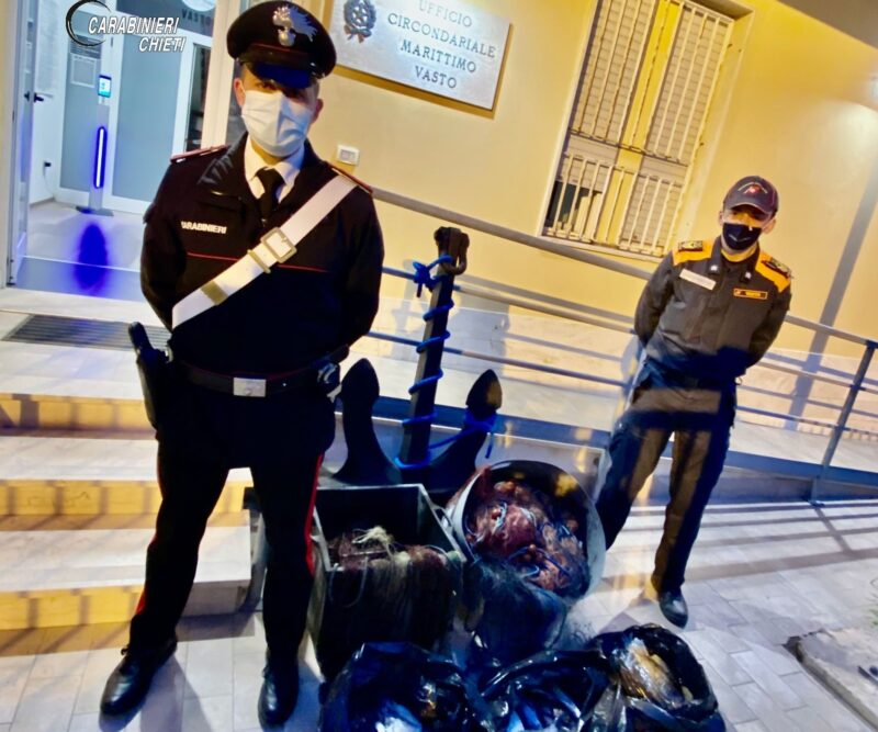 Nuova operazione congiunta di Carabinieri e Capitaneria di Porto contro la pesca di frodo. A finire nella rete dei controlli preventivi sono stati questa volta due pescatori di frodo di Paglieta e già noti alle Forze dell’Ordine per diversi precedenti.