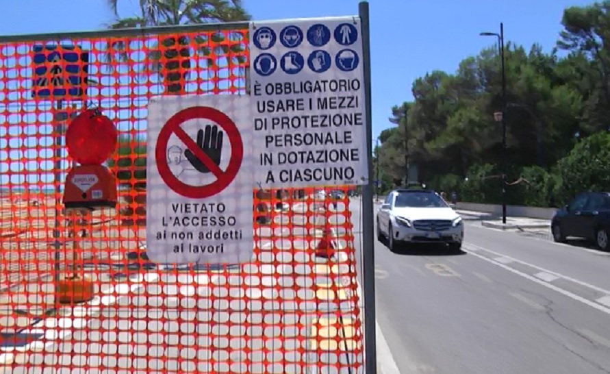 Il progetto realizzato dall’Ufficio Tecnico del Comune di Montesilvano, vuol trasformare, secondo quanto illustrato dall’assessore ai Lavori Pubblici, Anthony Aliano, i circa 500 metri di riviera con una nuova pista ciclabile ed il ricongiungimento della Pineta verso il mare. La conclusione dei lavori è prevista per fine mese ed è stato previsto un finanziamento di circa 107 mila euro solo per il primo lotto. Per consentire la demolizione del cordolo in cemento della pista ciclabile, ieri è stato posizionato un semaforo temporaneo che ha causato diversi problemi alla viabilità. Viabilità che è tornata normale nella giornata di oggi mentre qualche disagio si registra ancora per chi percorre quel tratto di riviera a piedi o in bicicletta. Il marciapiede infatti deve soddisfare le necessità di pedoni e ciclisti. I lavori come già detto termineranno a fine mese e l’amministrazione comunale chiede ai cittadini un po’ di pazienza e collaborazione.