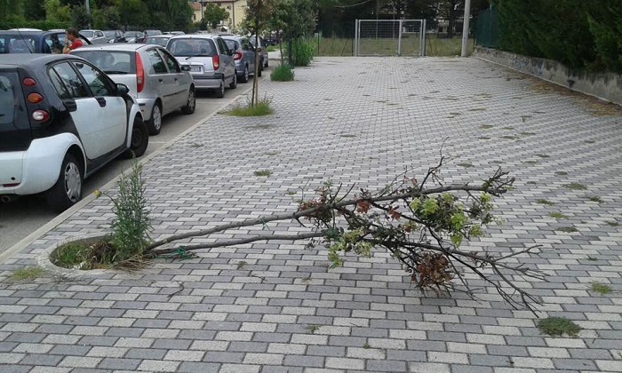 “Il patrimonio verde nell’incuria: ecco il giovane leccio simbolo del disinteresse”, scrivono le associazioni che hanno costituito il Coordinamento Salviamo gli Alberi, in una nota, allegando la foto (guarda sotto) della pianta in questione. “Mentre le motoseghe erano in azione a Via del Santuario per tagli selvaggi e con modalità da quarto mondo (basta vedere il traffico che fa lo slalom tra i resti degli alberi tagliati…) una trentina di cittadini ha presenziato alla Commissione Vigilanza del Comune di Pescara, presieduta dal Presidente Masci. I cittadini e i rappresentanti delle associazioni – aggiunge il Coordinamento – hanno incalzato i rappresentanti del comune perché attendono risposte concrete all’appello per fermare i tagli e riportare quest’azione selvaggia nel solco delle procedure che tutti i comuni usano e, cioè, l’approfondimento strumentale prima di decretare la morte o la vita di alberi che hanno 50-90 anni. Questo patrimonio deve essere conservato, anche perché lo stato del verde a Pescara è ridotto ai minimi termini. In questi giorni, mentre si tagliano alcuni alberi apparentemente in ottimo stato (basta vedere cosa rimane), i cittadini impegnati stanno verificando sul campo il totale disinteresse addirittura per alberi secchi ancora in piedi, quelli sì da abbattere immediatamente perché pericolosi. Manutenzione praticamente inesistente o limitata a interventi che non manifestano la cura del verde, ma solo la soluzione estrema di potature e tagli. Ci basterà allegare la foto di un giovane leccio ancora vivo in via Luigi Einaudi in zona S. Donato che è un simbolo di questa situazione, così stretto in un’aiuola ridicola. Crediamo che ogni sforzo debba essere fatto – concludono dal Coordinamento Salviamo gli Alberi – per ridare alla città il volto della città giardino e questo passa in primo luogo per la tutela degli alberi storici della città.”