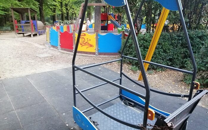 In questi giorni l’ultimo oltraggio: la recinzione messa a protezione dell’area giochi non include l’altalena, che giace desolata e abbandonata a se stessa, preda dell’incuria e del disinteresse generali. Che messaggio recepiscono i piccoli cittadini di Chieti che si recano nell’area giochi? Che i loro coetanei con delle disabilità possono essere esclusi ed emarginati? Che è meglio che si divertano da soli, in aree separate dagli altri? Che i giochi dedicati a loro possono essere lasciati all’abbandono e all’incuria?