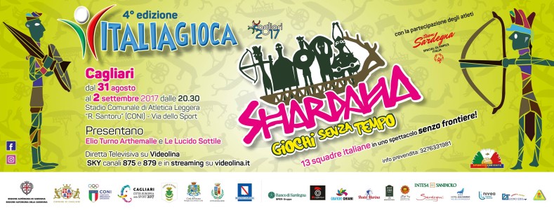 Quest’anno la carovana dei giochi si è spostata da San felice Circeo a Cagliari, città europea dello Sport per il 2017. L’evento è promosso dal network nazionale Italia Gioca e, in questa quarta edizione, organizzato dall’associazione cagliaritana Sportivambiente, con il patrocinio del Comune di Cagliari e della Regione Sardegna. Dopo le precedenti edizioni svoltesi a Parma e a San Felice Circeo, che hanno visto crescere progressivamente le rappresentative partecipanti, il 2017 vede ben 13 squadre in gara, provenienti da tutta Italia. Le sfide iniziano questa sera e terminano il 2 settembre, tutte presso il campo di atletica leggera R. Santoru (Campo CONI) di Cagliari. L’edizione 2017 di Italia Gioca, dal titolo Shartana–Giochi senza tempo, prevede una serie di prove divertenti ispirate agli usi, ai costumi e alle tradizioni della Sardegna. Cagliari fa da scenario ad un evento unico nel suo genere: 13 squadre, 300 atleti con altrettanti accompagnatori, un’area di gioco con 3000 posti a sedere, scenografie nuragiche, cerimonia d’apertura con gli atleti Special Olympics e diretta tv (Videolina e canali SKY 875, 879) per un evento che promuove lo sport, lo scambio culturale e l’aggregazione sociale. Queste le squadre in gara: i campioni in carica di Moconesi per la Liguria, Cagliari per la Sardegna, Castelfranco Piandiscò per la Toscana, Castrovillari per la Calabria, Dalmine per la Lombardia, Pescopagano per la Basilicata, San Felice Circeo per il Lazio, San Giorgio Jonico per la Puglia, San Prospero per l’Emilia Romagna, Saviano per la Campania, Verbania per il Piemonte, la Val di Sole per Trentino Alto Adige e Pescara per l’Abruzzo.