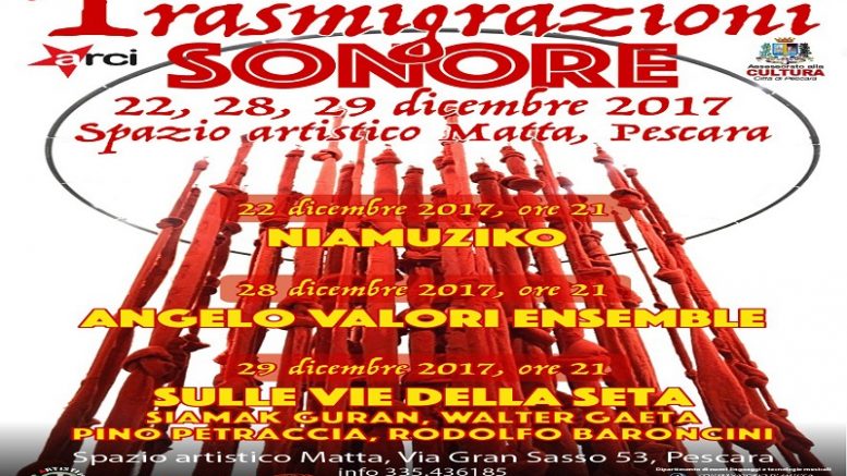 Una rassegna musicale all’insegna della “Trasmigrazioni Sonore” quella in scena al Matta di Pescara. Tre appuntamenti, 22, 28 e 29 dicembre, rispettivamente con NiaMuziko, Angelo Valori Ensemble, Siamak Guran.