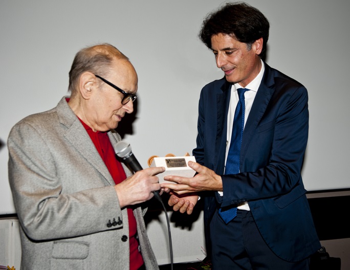 Ricercato dai registi di tutto il mondo per la sua geniale versatilità, Morricone ha frequentato tutti i generi di film, sempre caratterizzandoli con colonne sonore suggestive e riconoscibili. Ora il Maestro è diventato protagonista anche del premio dedicato alla memoria di Alessandro Cicognini, celebre compositore del cinema neorealista. Nella Sala Trevi di Roma, Morricone ha ricevuto il riconoscimento da Davide Cavuti, compositore e direttore del Centro Studi Nazionale Cicognini. La manifestazione, organizzata dal Centro Ricerche e Studi Nazionale Alessandro Cicognini, si è svolta in collaborazione con il Centro Sperimentale di Cinematografia della Capitale, la Cineteca Nazionale e il Comune di Francavilla al Mare. Alla cerimonia erano presenti, tra gli altri, anche la compagna del Maestro Cicognini, Anna Racinaro, il presidente della Fondazione Centro Sperimentale di Cinematografia di Roma, Felice Laudadio, il direttore della Cineteca Nazionale, Gabriele Antinolfi e l’attore Pino Ammendola. La serata è stata condotta dalla giornalista Mila Cantagallo.