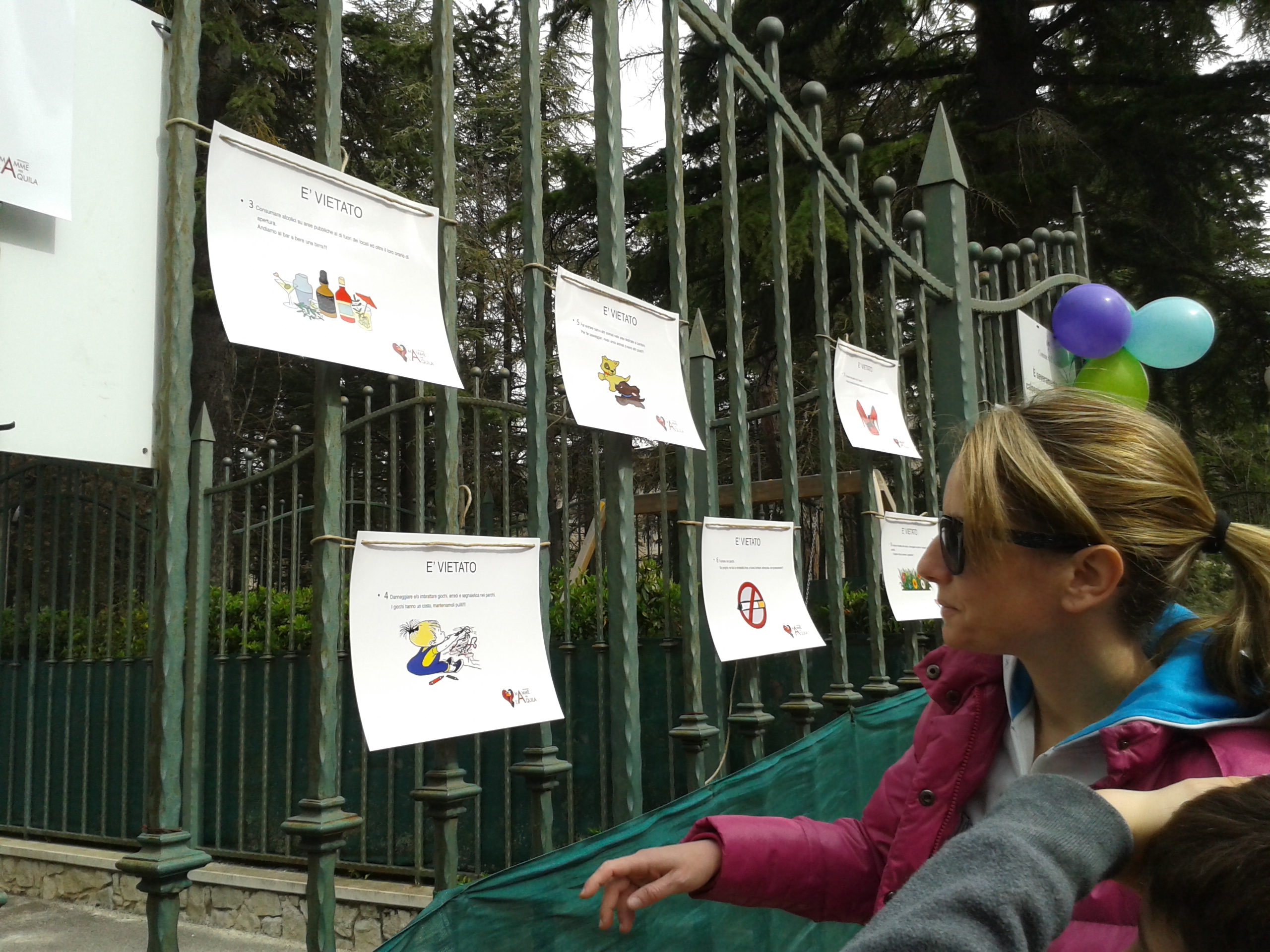 E’ solo la prima delle 10 regole inserite nel decalogo per il comportamento perfetto da usare nei luoghi pubblici, soprattutto quelli destinati ai bambini, come può essere un parco giochi, messo a punto dalle mamme dell’associazione “Mamme per L’Aquila”. Munite di tutto l’occorrente e con i figi a seguito, questa mattina hanno deciso di ripulire il parco giochi del castello, uno dei più belli della città, donato dall’associazione Forza L’Aquila per dare ai bambini, dopo tanti anni dal sisma, un parco pieno di giochi fantastici. La giornata è stata dedicata alla pulizia al motto: “Un Parco Pulito”. Un momento formativo per tanti bambini, che hanno imparato a pulire, hanno disegnato e letto le regole del buon cittadino. Caramelle, colori e quaderni e palloncini sono stati regalati da alcuni supermercati aquilani. Guanti e rastrelli dall’Asm, l’azienda che si occupa dei rifiuti urbani.