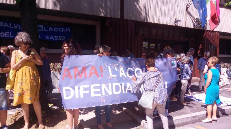 “Siamo qui per tutta l’acqua d’Abruzzo – ha detto Augusto De Sanctis – perché la Regione è inadempiente da dodici anni nell’identificazione delle aree importanti per l’acqua potabile e questo ha fatto sì che negli anni fossero realizzati interventi scorretti per la gestione dell’acqua, con la realizzazione di industrie e cave sopra le zone di ricarica per l’acqua potabile. Ora c’è un progetto per un’enorme cava sopra le sorgenti del Pescara. Una follia, parliamo di una sorgente da 7mila litri al secondo. Questo perché manca la ‘carta delle aree di salvaguardia’ che la Regione ha, perché abbiamo anche pagato degli ingegneri per farla, ma la tiene nel cassetto. Poi c’è la questione Gran Sasso, dove bisogna rispettare l’obbligo di togliere le sostanze chimiche pericolose dai Laboratori dell’Infn”.