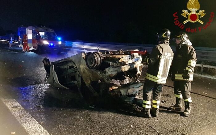 È di sei feriti il bilancio dell’incidente stradale accaduto la scorsa notte intorno alle 3.20 sul raccordo autostradale Chieti-Pescara all’altezza di Dragonara dove, per cause in corso di accertamento un’auto si è ribaltata incendiandosi, e causando poi un incidente che ha coinvolto altre quattro auto. Immediato l’intervento dei sanitari del 118 di Pescara e Chieti, dei vigili del fuoco del personale di Anas e Polizia stradale di Piano D’Orta. Due feriti, un uomo e una donna di 66 anni stati portati all’ospedale di Pescara, gli altri a Chieti. L’uomo ha riportato un trauma cranico e ustioni di primo grado alle mani. Il tratto interessato è rimasto chiuso per due ore e mezzo per permettere il lavoro dei soccorritori.